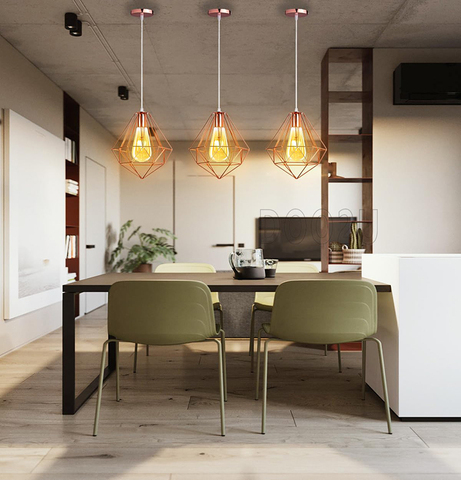 220V E27 שחור צבע ברזל כלוב מודרני נורדי 3 אורות תליון אור חדר אוכל מטבח מתכת עץ תליית תקרה תליון מנורה
